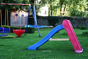 Wenn die Sonne lacht geht es raus auf den eigenen Spielplatz der Spielgruppe. Direkt am Gemeindehaus gelegen haben die Kinder hier die Gelegenheit, sich an der frischen Luft mal so richtig auszutoben. Wir gehen aber auch bei weniger gutem Wetter nach draußen, darum ist eine Matschhose sehr zu empfehlen.